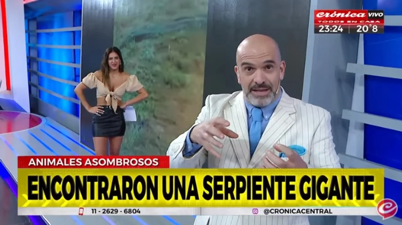 En Crónica estaban hablando de la aparición de una gran anaconda en una ruta rural de Brasil y Nacho Goano empezó a jugar con su compañera al demostrar que sabía mucho sobre este tipo de serpientes.