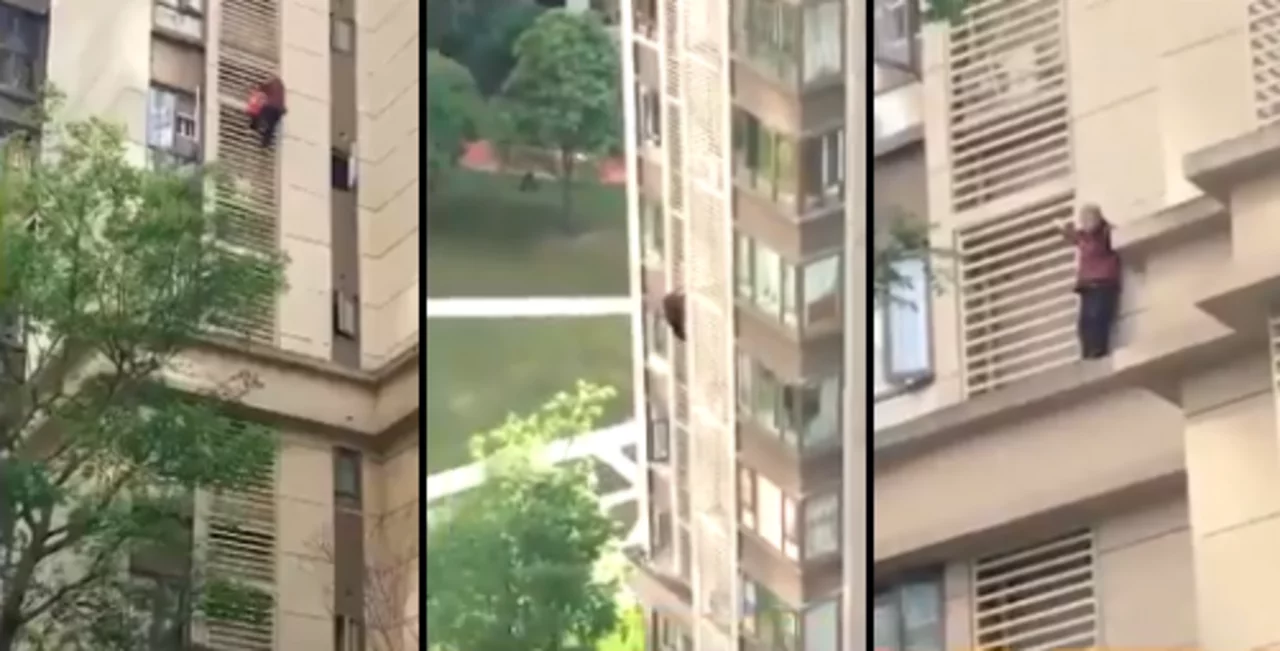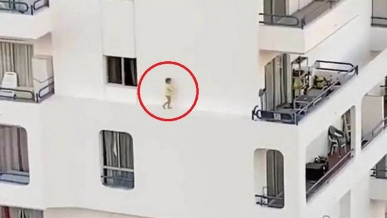 El dramático momento en el que un nene camina por la cornisa de un edificio