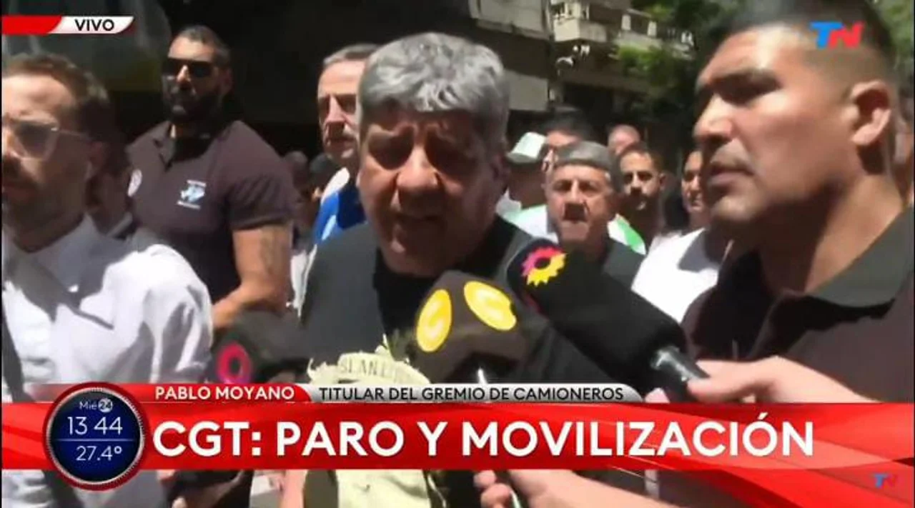El exdiputado se mostró en la marcha y aprovechó los móviles de televisión para cuestionar la medida de fuerza de los sindicatos. Al ser consultado sobre esos dichos, el dirigente camionero lo ubicó con una irónica respuesta.