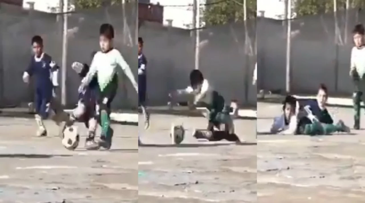Al igual que el jugador uruguayo hizo en el clásico de Madrid, un nene pegó un patadón para tarjeta roja que se viralizó en las redes.