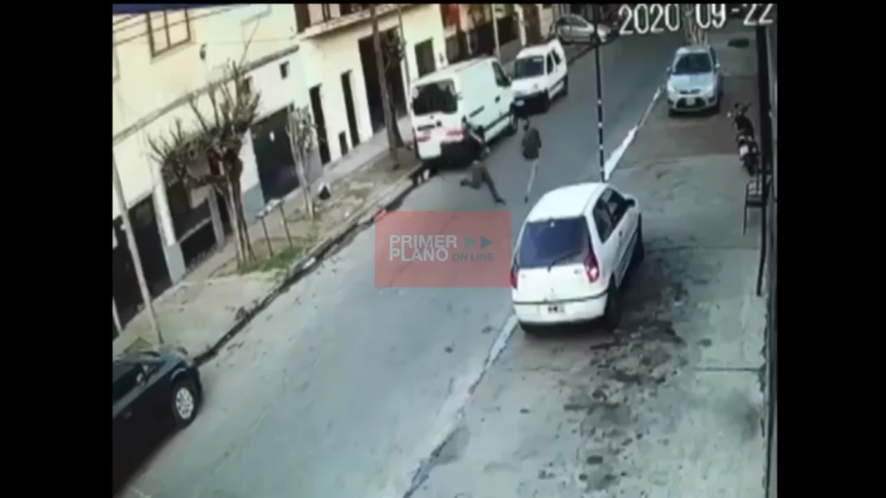 La escena es muy rápida pero permite ver la acción en su totalidad. Y lo que queda claro es tanto la intención del delincuente de robar a la carrera el celular de un conductor que estaba estacionando su auto, como la reacción de un vecino que metió una patada de roja directa.