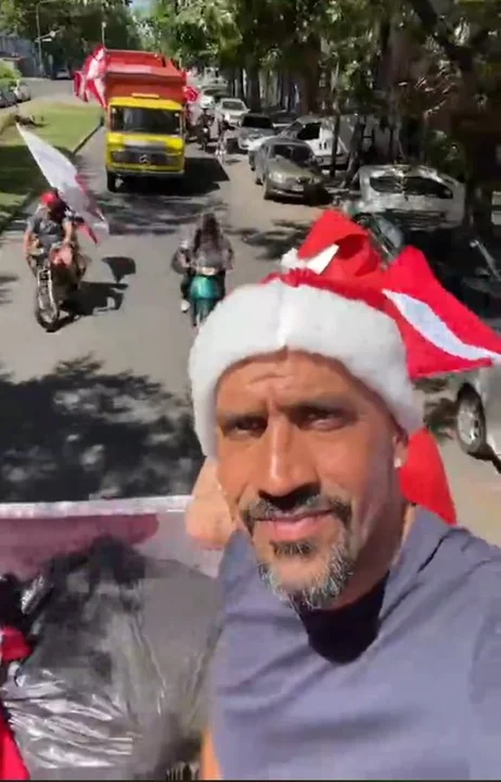 Arriba de un camión el vicepresidente de Estudiantes de La Plata se sumó a la iniciativa que el club lleva adelante como parte de los festejos navideños y sorprendió a los hinchas del Pincha.